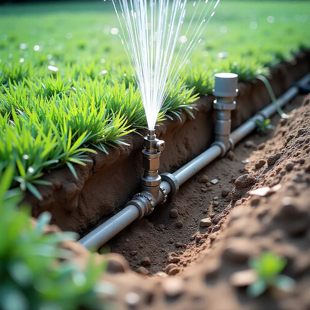 Professional underground sprinkler installation package for large lawns. Features pop-up sprinkler heads, zone valves, and programmable controller for comprehensive lawn coverage.